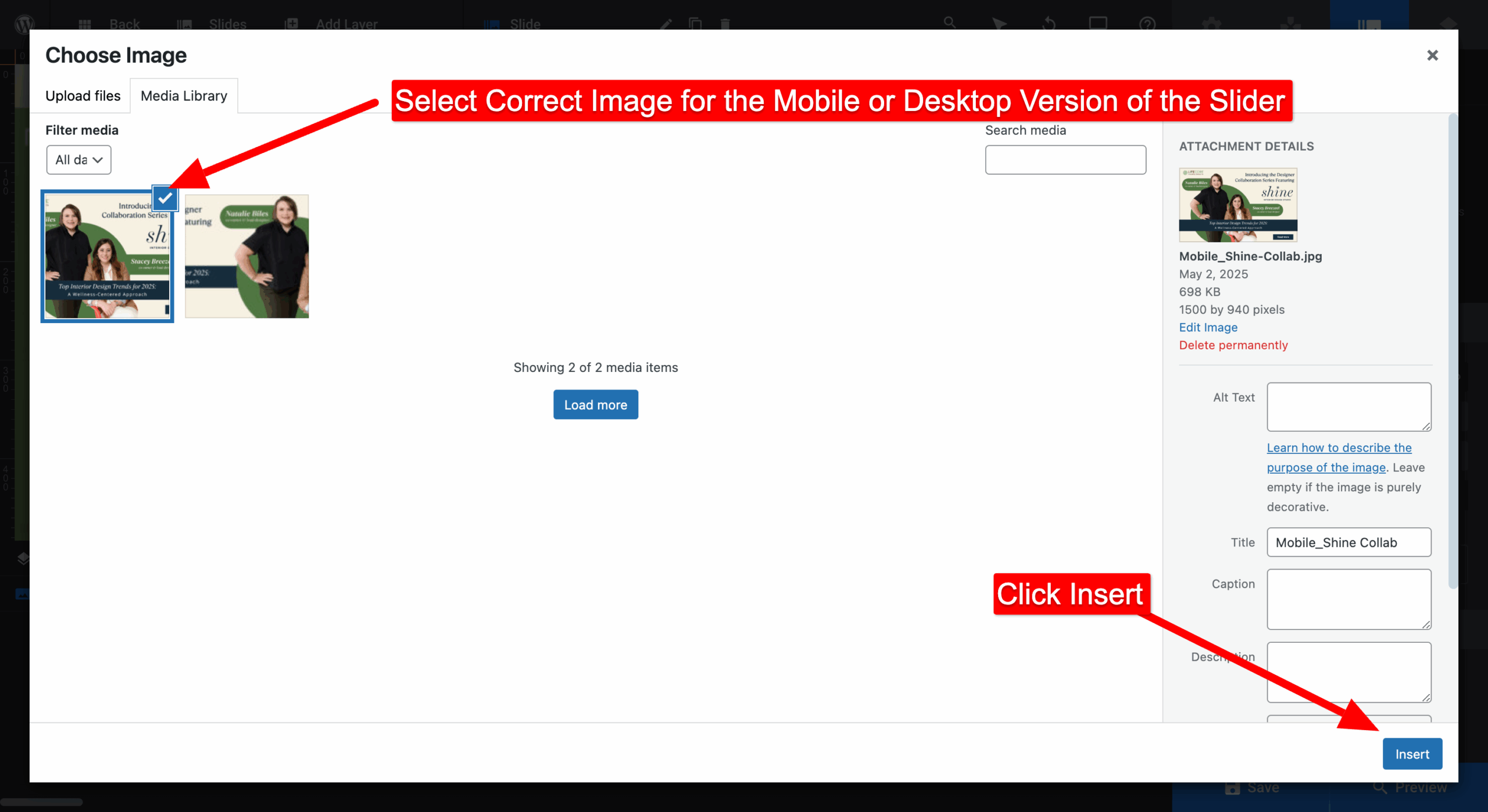 - Choose new image from Media Library